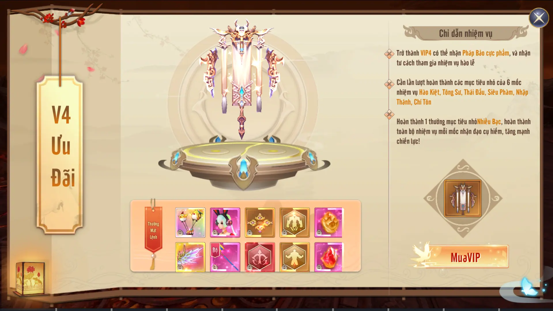 - Bên cạnh đó, khi đạt VIP4 Đại Hiệp còn có thể mua những gói đầu tư VIP, nhận được rất nhiều bạc, nguyên liệu, lượng lớn tiên ngọc và rất rất nhiều ưu đãi khác đang đợi bạn khám phá.