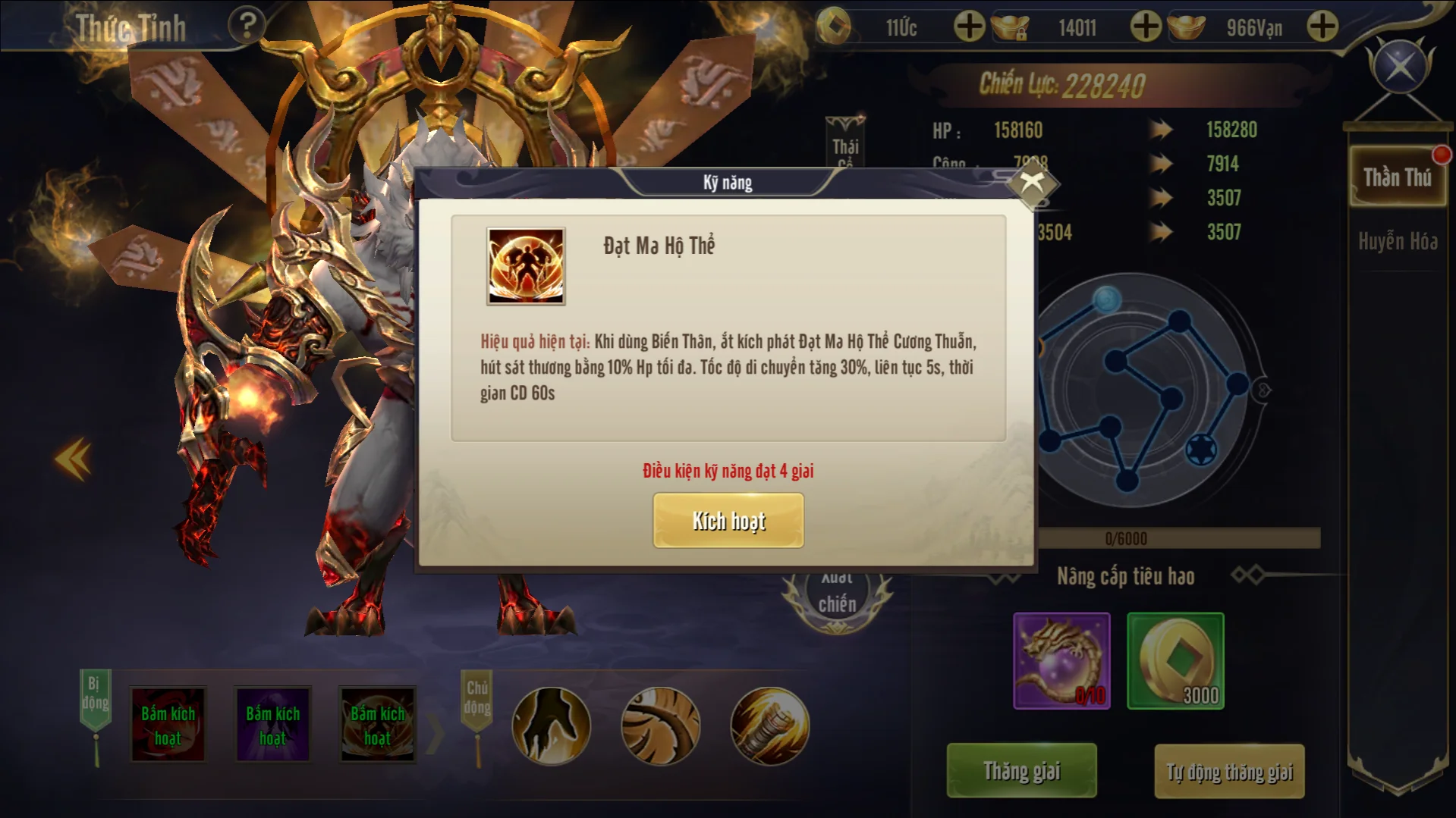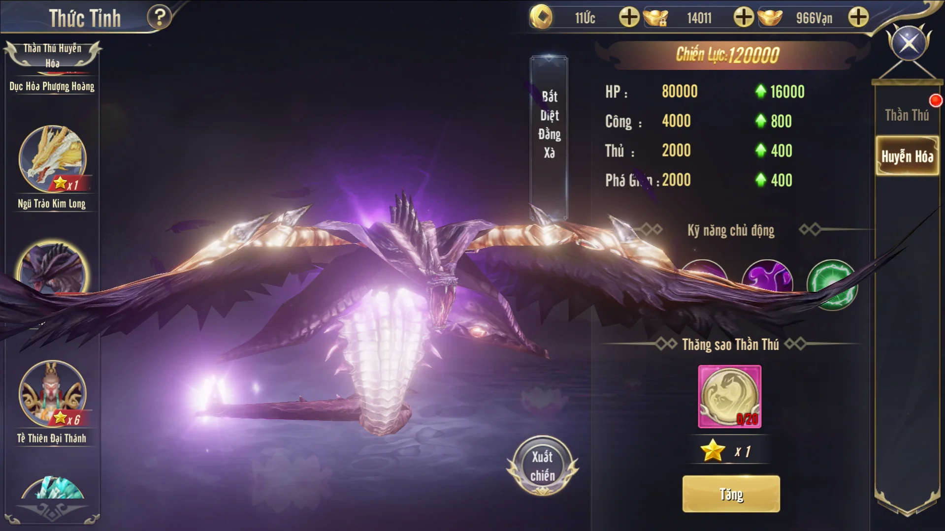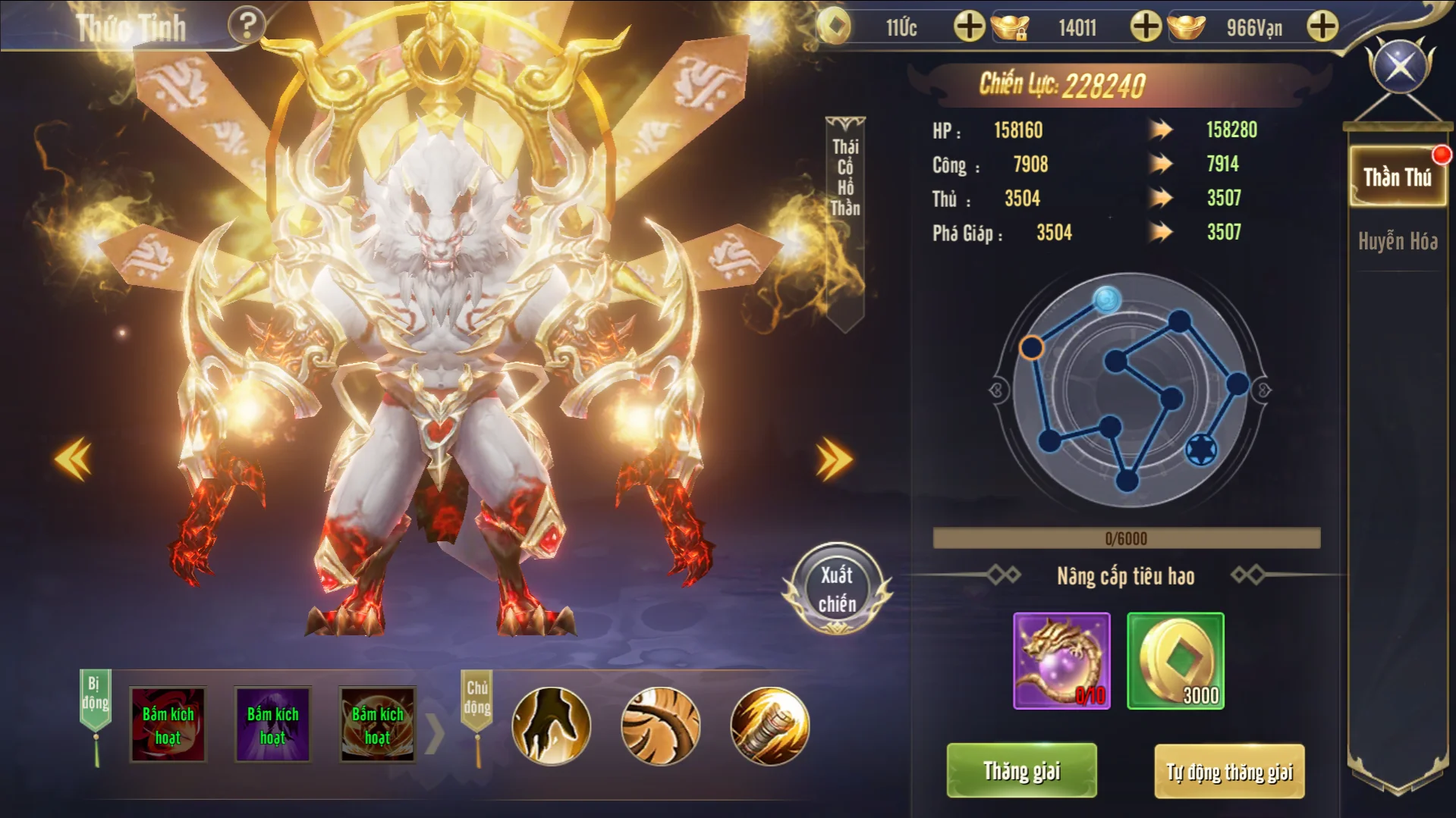 Tính năng này sẽ cung cấp cho Đại Hiệp các hóa thần đẹp theo sở thích, không chỉ đem lại ngoại hình cực đẹp mà còn đem tới lượng sức mạnh khổng lồ. Khi cấp Thần Thú càng cao, Đại Hiệp sẽ mở càng nhiều kỹ năng mạnh mẽ.