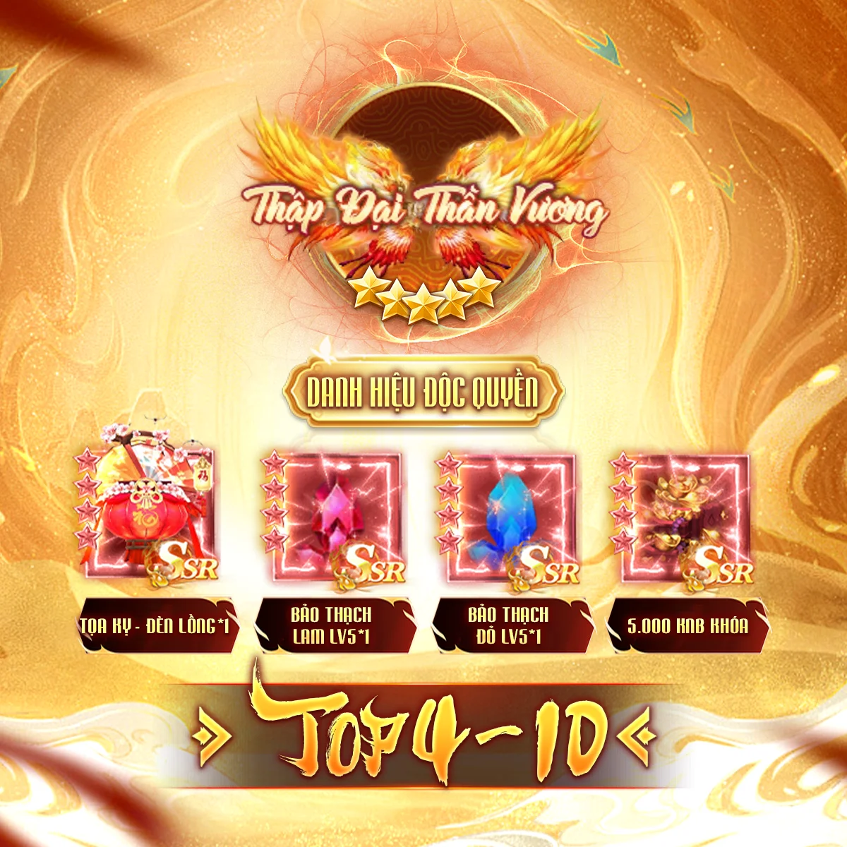 - TOP 1 - 10 của Cụm liên server đua top sẽ nhận thưởng CỰC XỊN, CỰC HẤP DẪN.